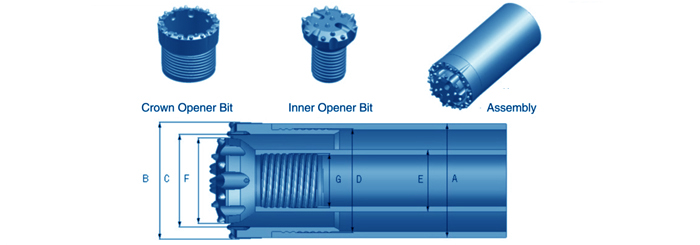 | Order Guide:Outer Dia.(A)+Reamed Dia(B)+Inner Dia(C)+Thread(D)+Drill Rod Dia (E)+Drill Bit Dia(F)+Thread(G) | ||||||||||