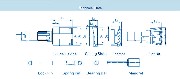 | 7 | Reamer | D5=238mm L5=100mm Reaming Diameter:308mm Reamer has 14xØ16buttons | |